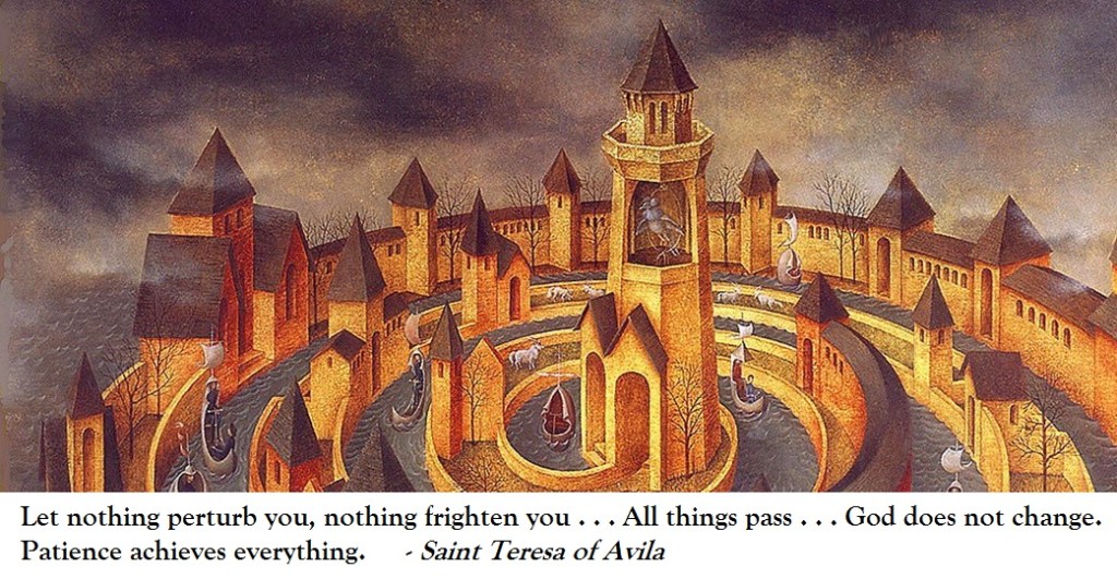 When Saint Teresa said that her prayers had become “solid like a house,” she meant that its foundations now went down into the lowly but firm ground of human nature, the concrete actualities of the natural life; and on those solid foundations, its walls rose up toward heaven. The strength of the house consisted in that intimate welding together of the divine and the human, which she found in its perfection in the humanity of Christ. There, in the common stuff of human life which He blessed by His presence, the saints have ever seen the homely foundations of holiness. Since we are two-story creatures, called to a natural and a supernatural status, both sense and spirit must be rightly maintained, kept in order, consecrated to the purposes of the city, of our full obligations are to be fulfilled.