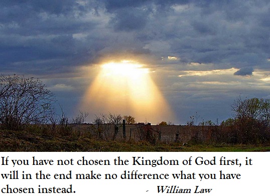 It is a great thing for any soul to say without reserve in respect of its own life, “Thy Kingdom come!” for this means not only the acknowledgement of our present alienation, our fundamental egoism and impurity, but the casting down of the will, the destruction of our small natural sovereignty; the risk and adventure which accompany an unconditional submission to God, a total acceptance of the rule of love. None can guess beforehand with what anguish, what tearing of old hard tissues and habits, the Kingdom will force a path into the soul, and confront self-love in its last fortress with the penetrating demand of God.