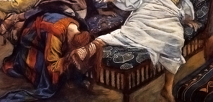 The reading from John further defines the contrast between human wickedness and faithfulness in the juxtaposition of Mary and Judas. Mary is honoring Jesus physically and spiritually by anointing him with something precious, precious as the love of Christ. Judas, however, sees her gesture as a waste of money. It is an image as evocative as it is timeless. “Leave her alone,” Jesus tells Judas. Where Judas sees waste, Jesus sees love and devotion.