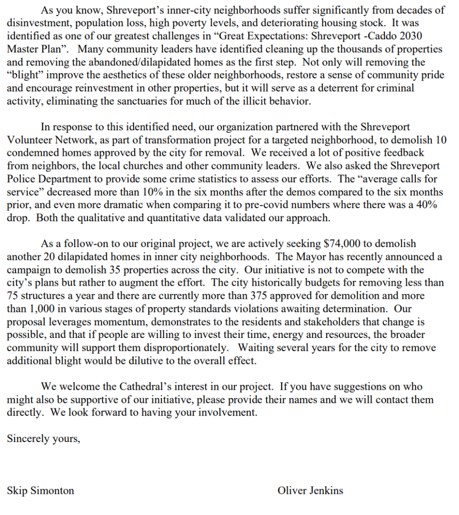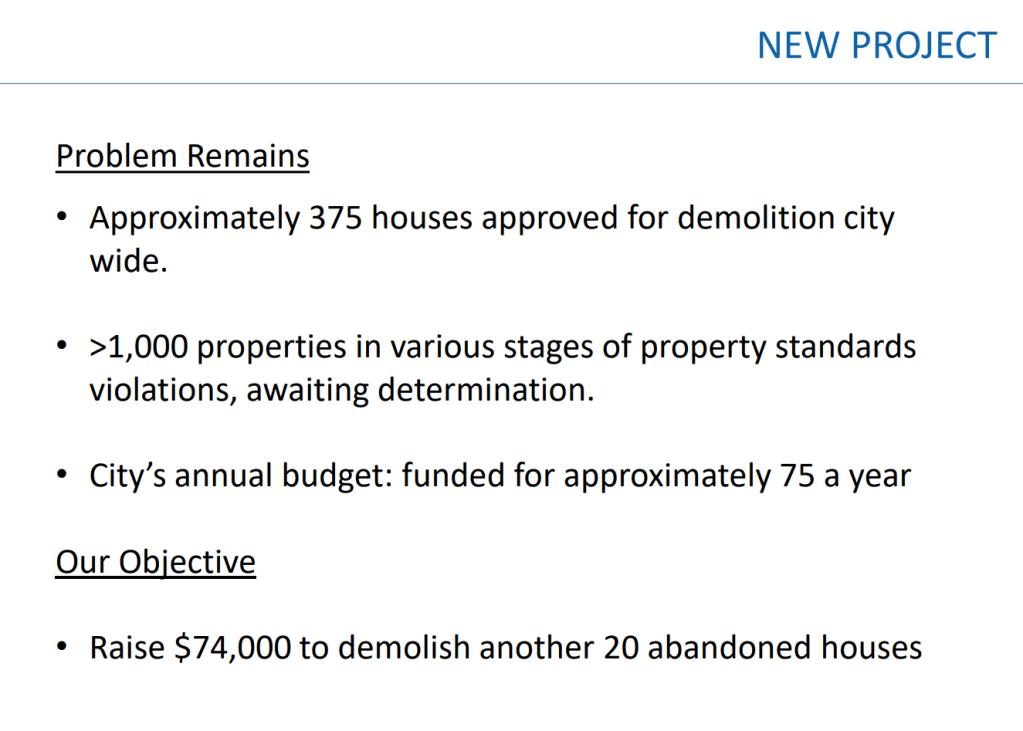 - Demolished and Removed 10 Dilapidated and Abandoned