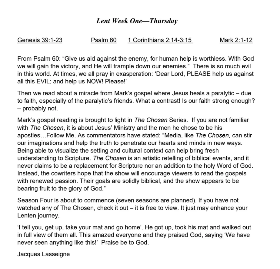 St Mark’s Lenten Thoughts February 22, 2024 aboydjohnson Share this: Click to email a link to a friend (Opens in new window) Email Click to share on Facebook (Opens in new window) Facebook Click to print (Opens in new window) Print Like Loading... Related Published by aboydjohnson Cathedral Dean - Shreveport - Father of 4 - Husband to Liza. View all posts by aboydjohnson